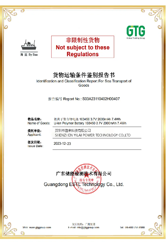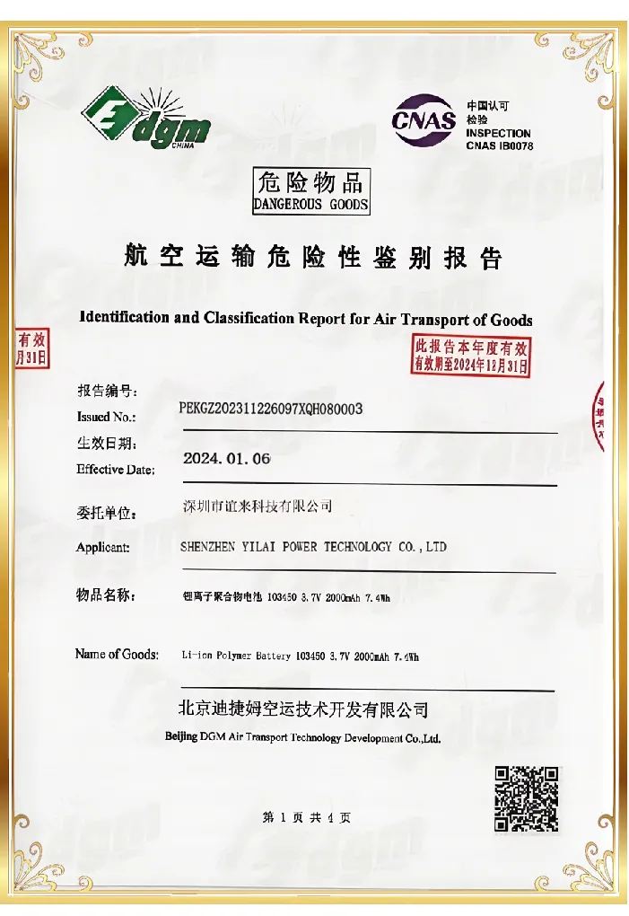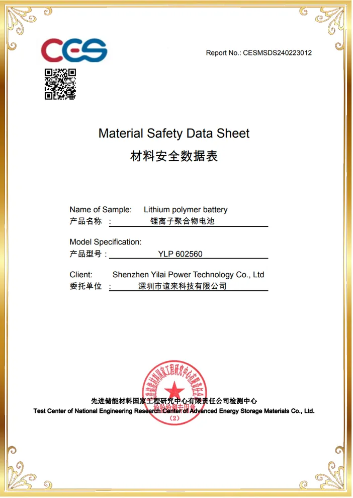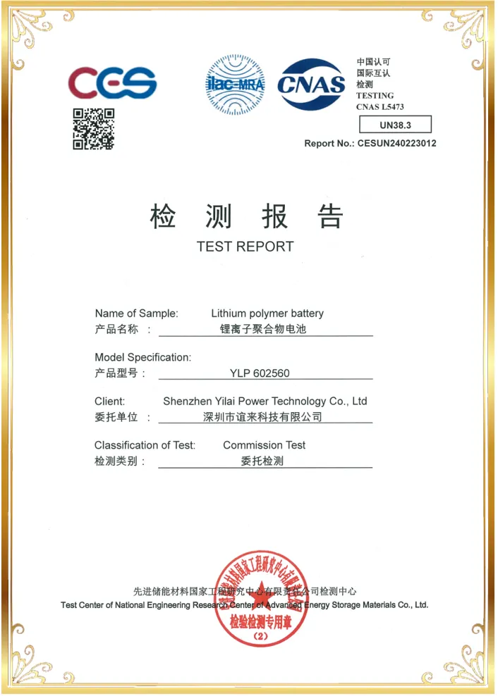 Yilai Power Wholesale 602560 3.7v 1000mah Lithium Polymer Battery got IEC62133/UN38.3 certificate